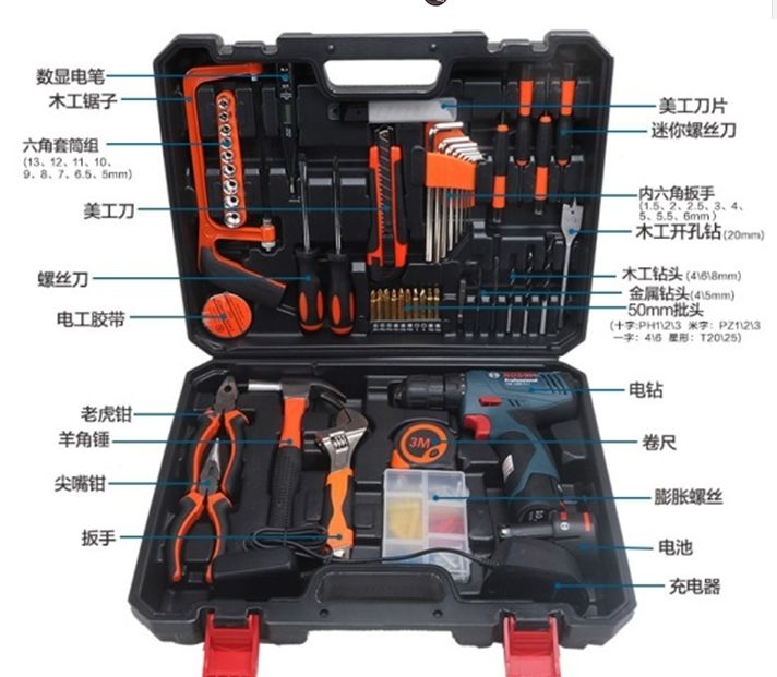 商品名称:博世 原装充电式电钻+国产配件工具箱
